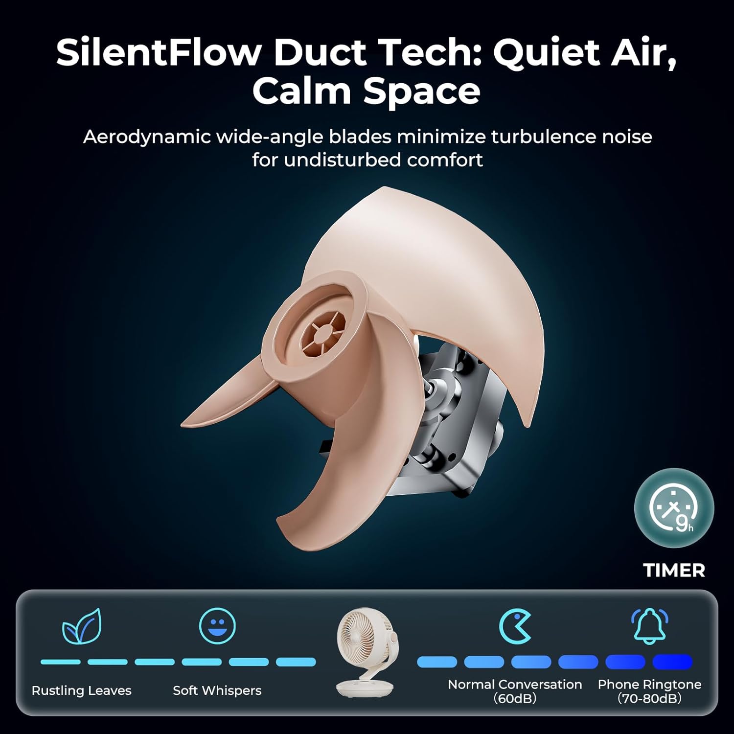 - Set It and Forget It: Smart Automation for Effortless Comfort:Enjoy perfectly timed comfort with the 9-hour programmable timer.Set this smart bedroom fan to auto-off as you sleep or turn on before you wake—your settings are retained nightly. This feature makes it an ideal office fan for scheduled cooling and a worry-free bedside fan for energy-efficient overnight use.